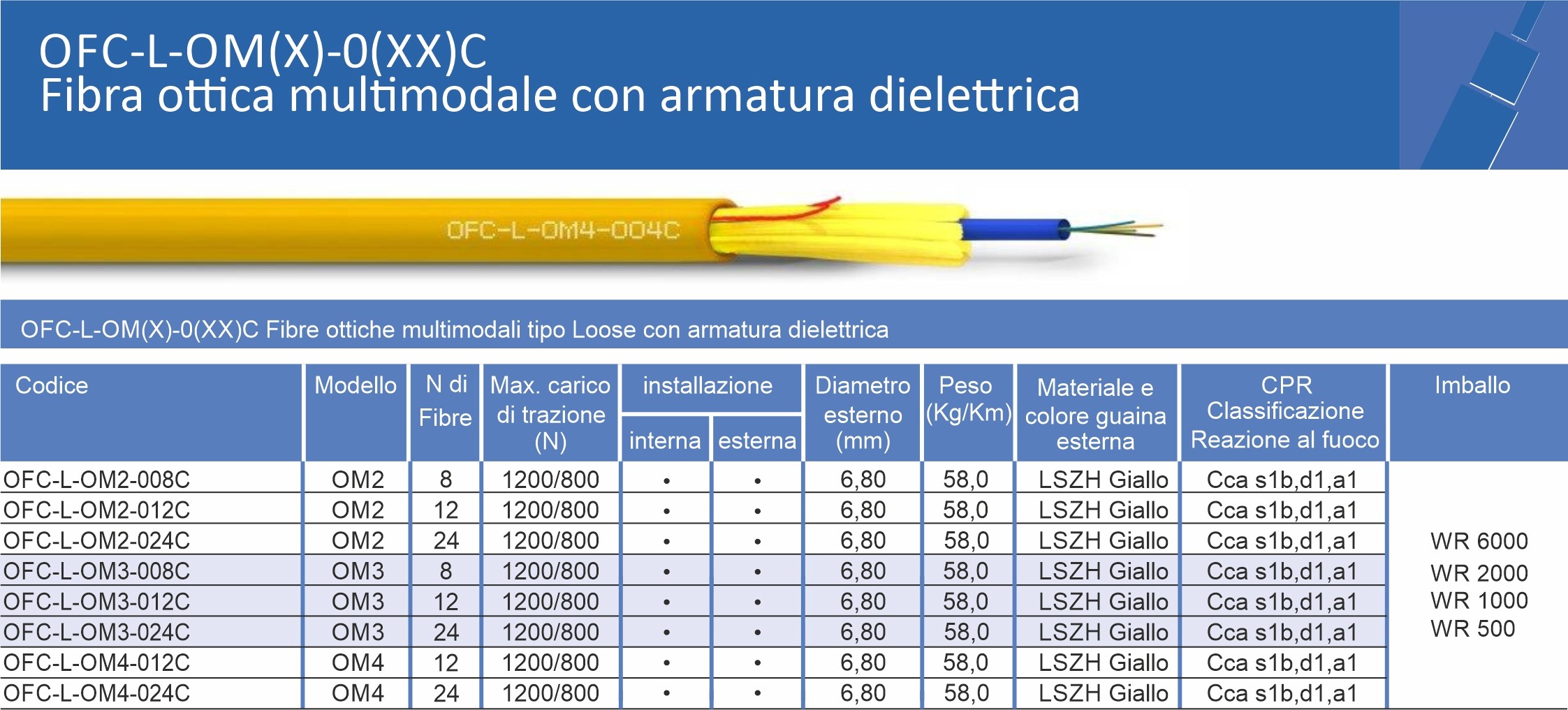Cavi in fibra ottica con armatura dielettrica