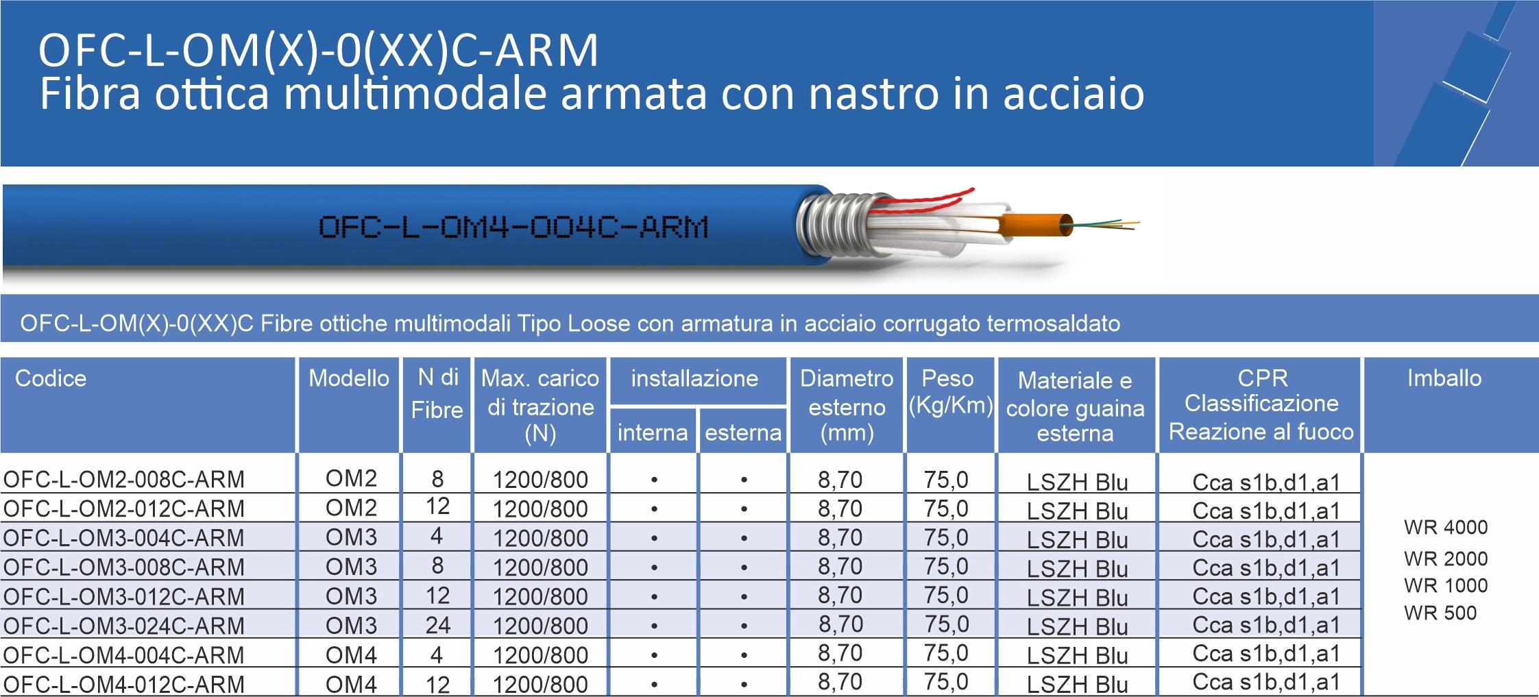 Cavi in fibra ottica armati